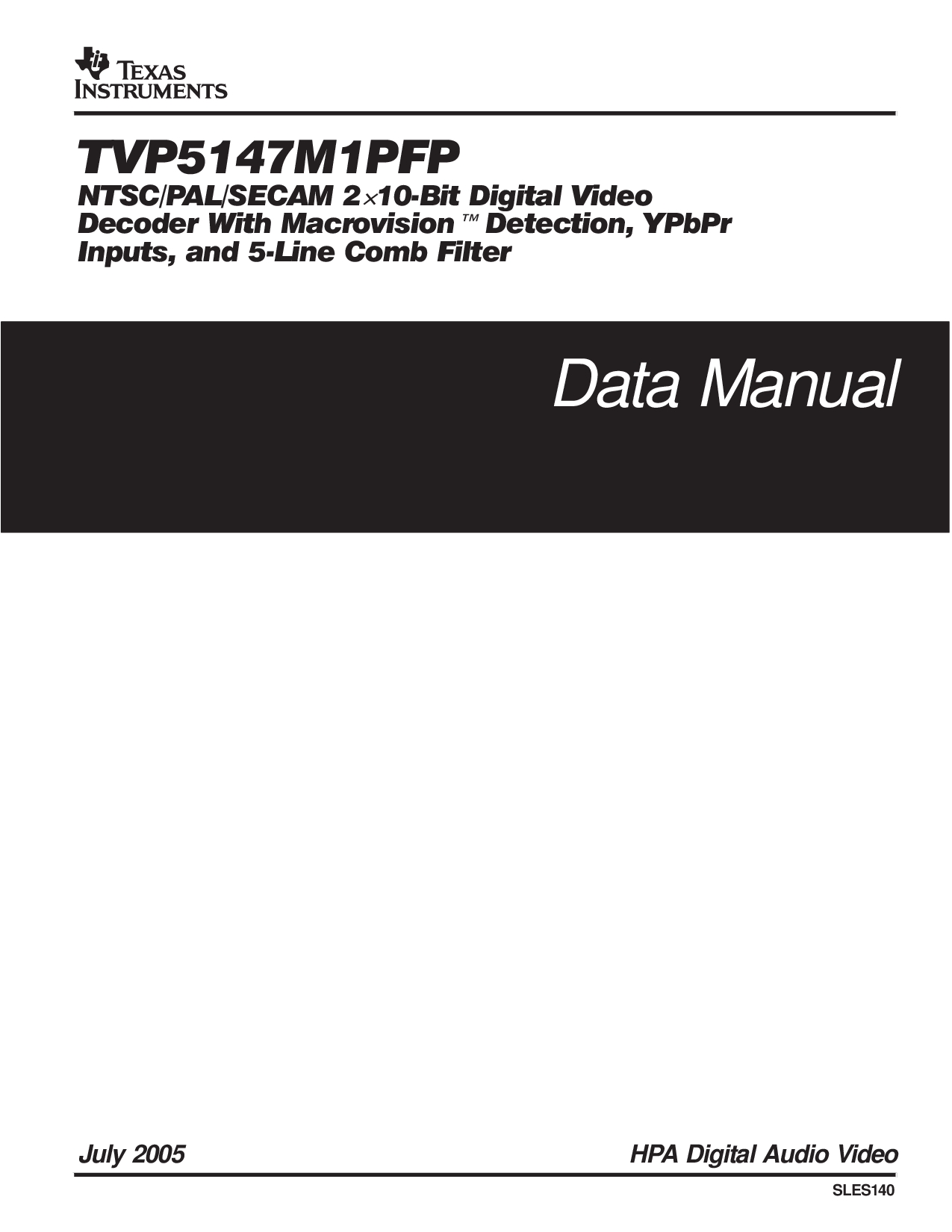 July2005 HPA数字音频视频 数据Manual SLES140 | |