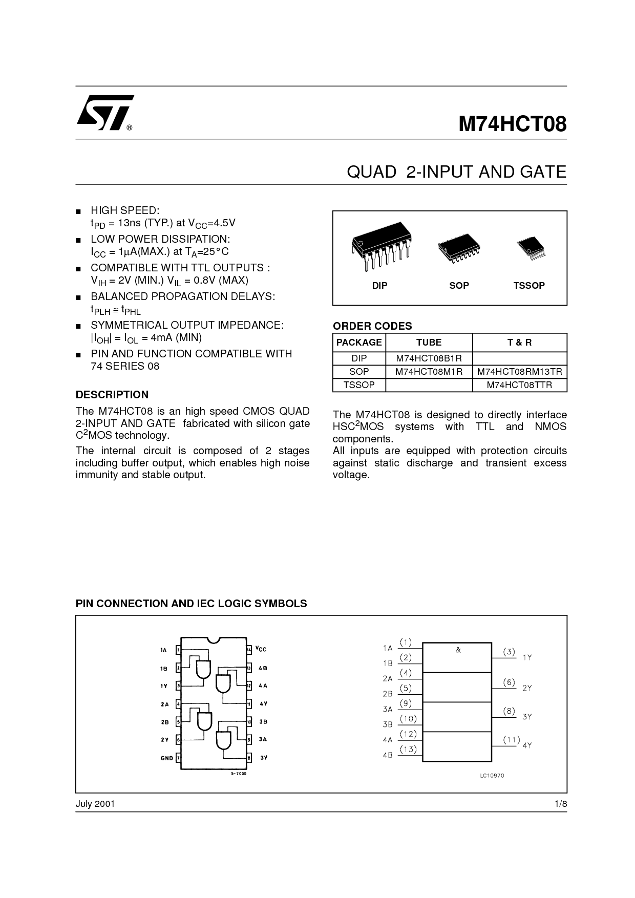 SOP M74HCT08M1R M74HCT08RM13TR