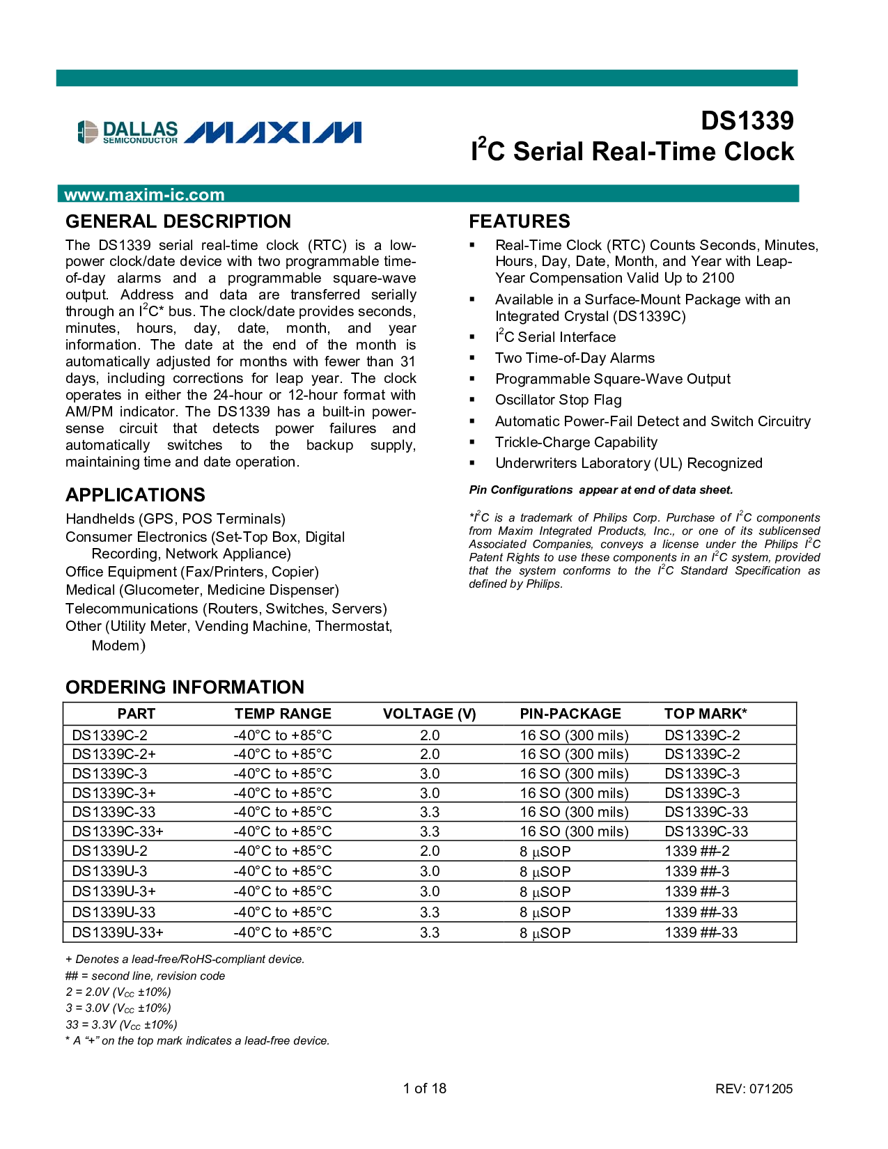 ds1339u-33+ -40°c 至 +85°c 3.3