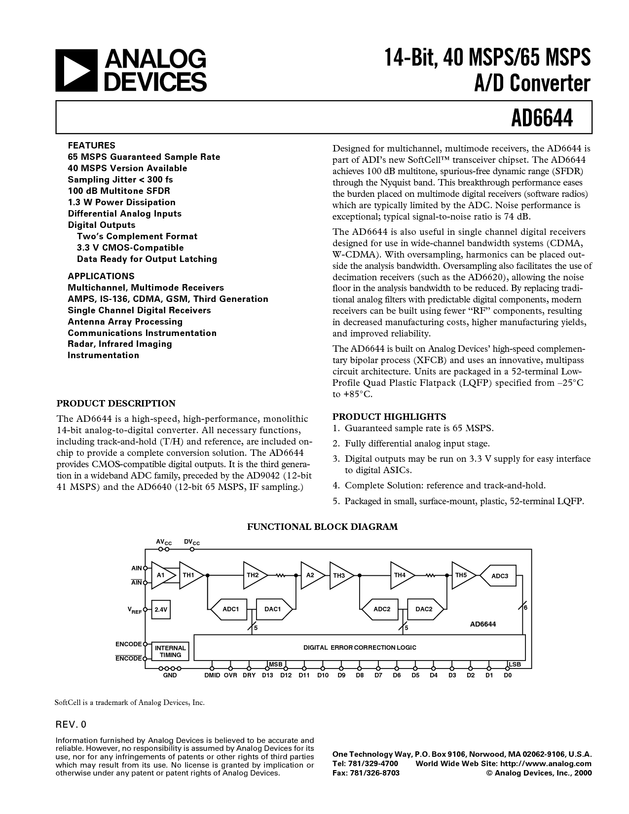 这 ad6644 是 已建成 开启 模拟 设备’ 高速 补充-