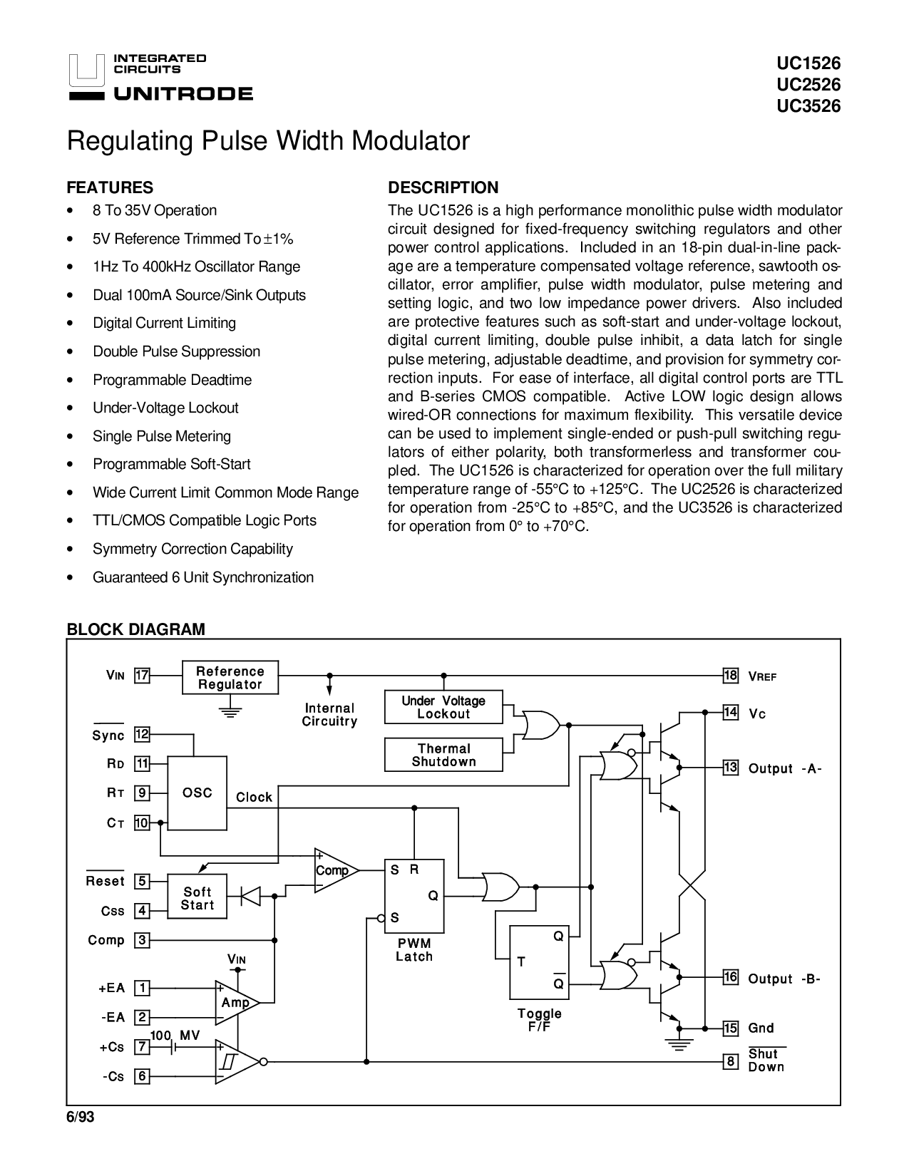 温度 范围 的 -55°c 至 +125°c. 这 uc2526 是 表征
