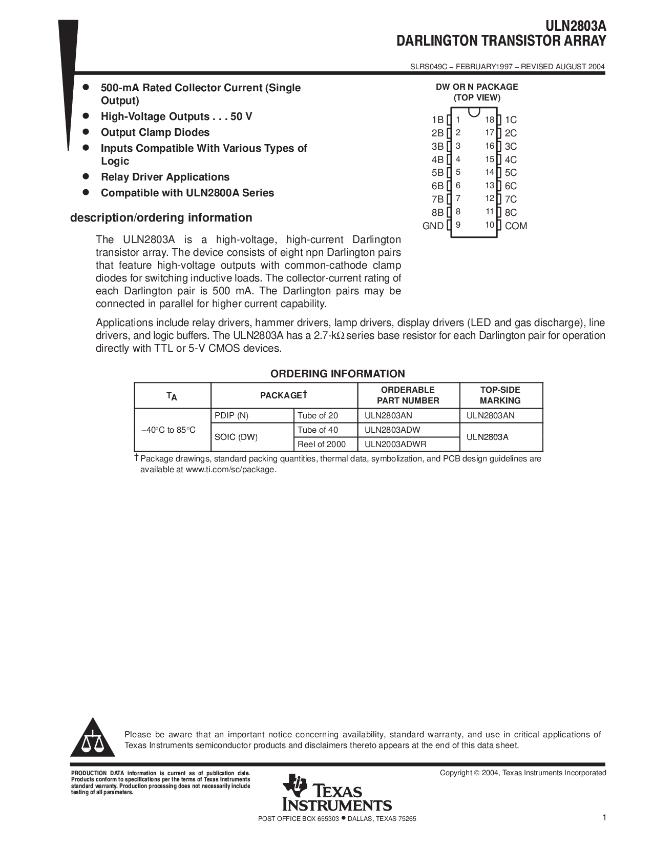 驱动程序,和 逻辑 缓冲区. 这uln2803a 有 一个 2.7-k