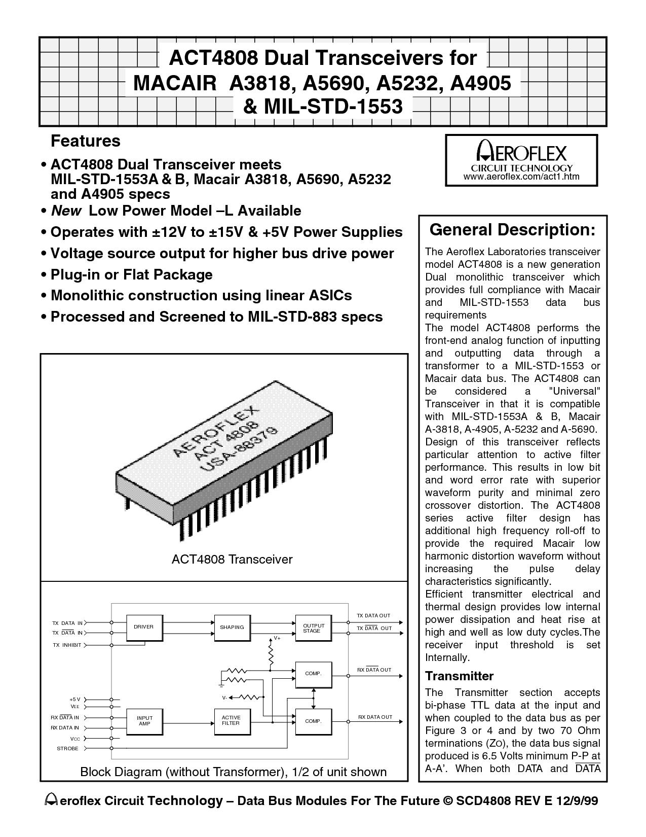 ACT4808 DUAL TRANSCEIVERS FOR MACAIR A3818, A5690, A5232, A4905 & MIL-STD-1553