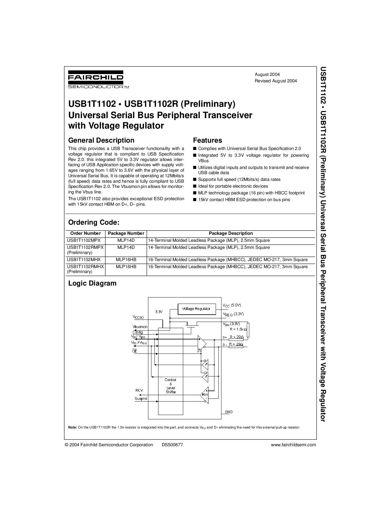 usb1t1102 • usb1t1102r (初步) 通用 串行 总线 外围设备 收发器 与 电压 调节器