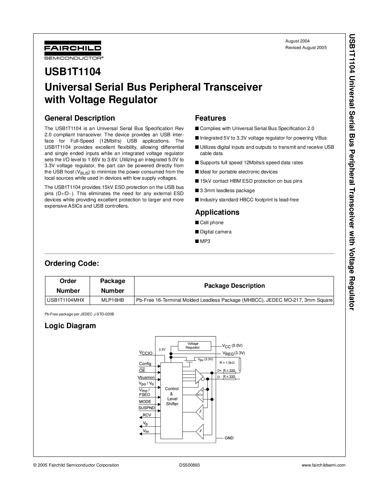 © 2005 仙童 半导体 公司 DS500893 www.仙女半.com