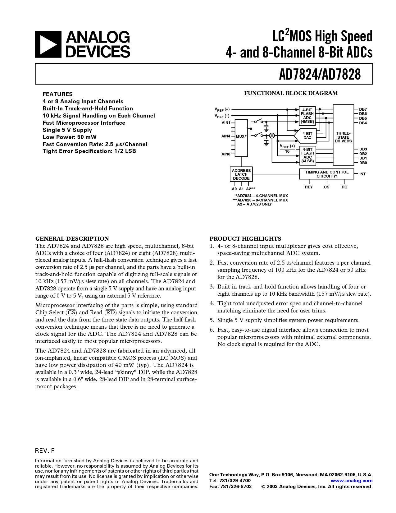这 ad7824 和 ad7828 是 高 速度, 多通道, 8-有点