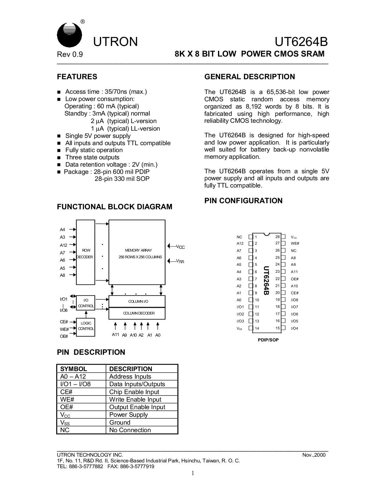 浏览型号UT6264BSC-70LL的Datasheet PDF文件第2页