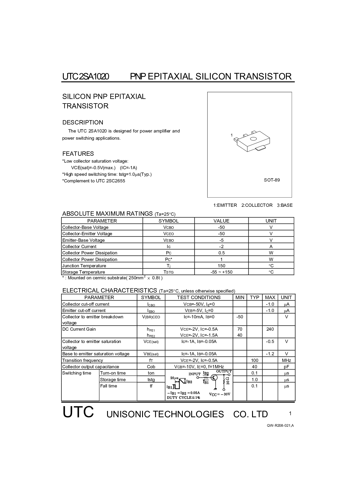 这 utc 2sa1020 是 设计 用于 电源 放大器 和