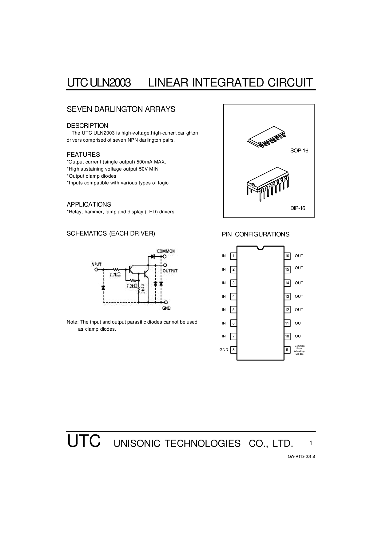这 utc uln2003 是 高-电压,高-电流 darlighton
