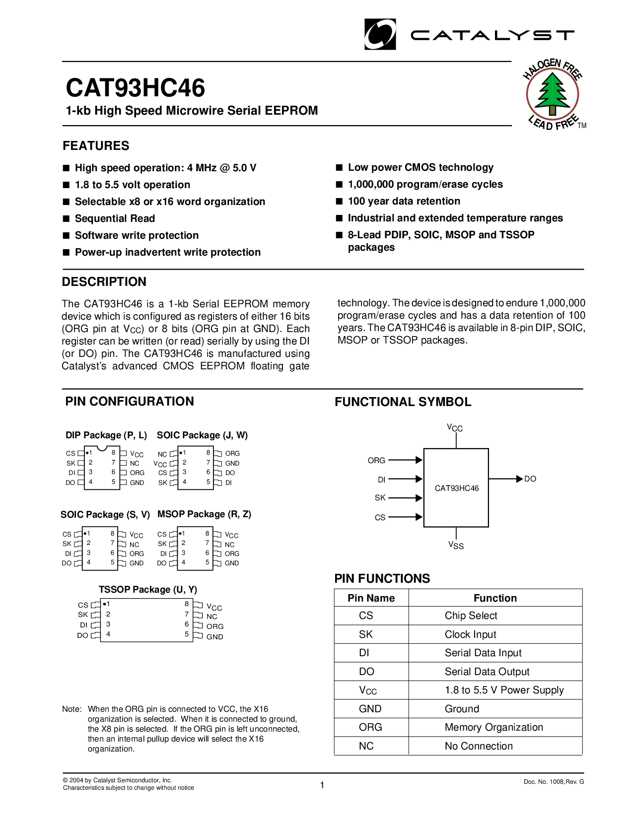 (或 做) 管脚. 这 cat93hc46 是 已制造 使用