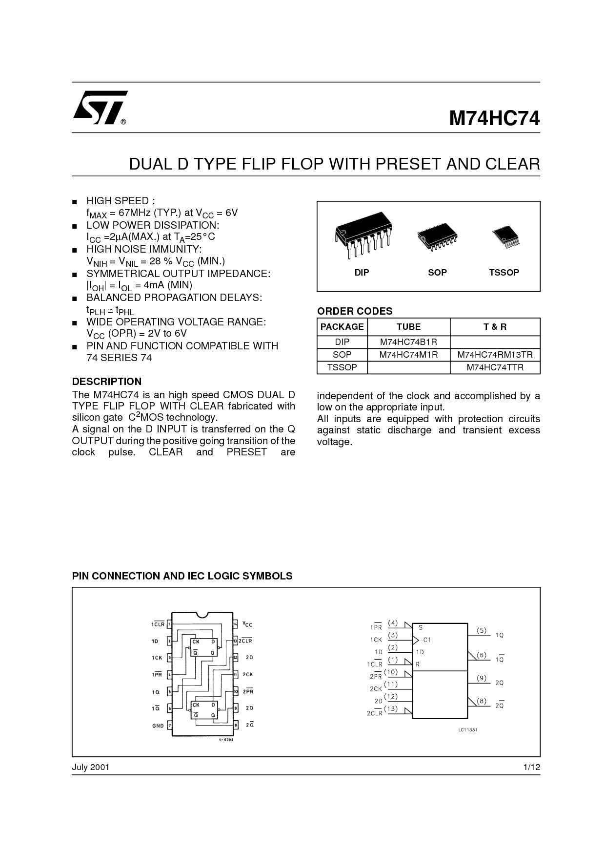 DUAL D TYPE FLIP FLOP WITH PRESET AND CLEAR