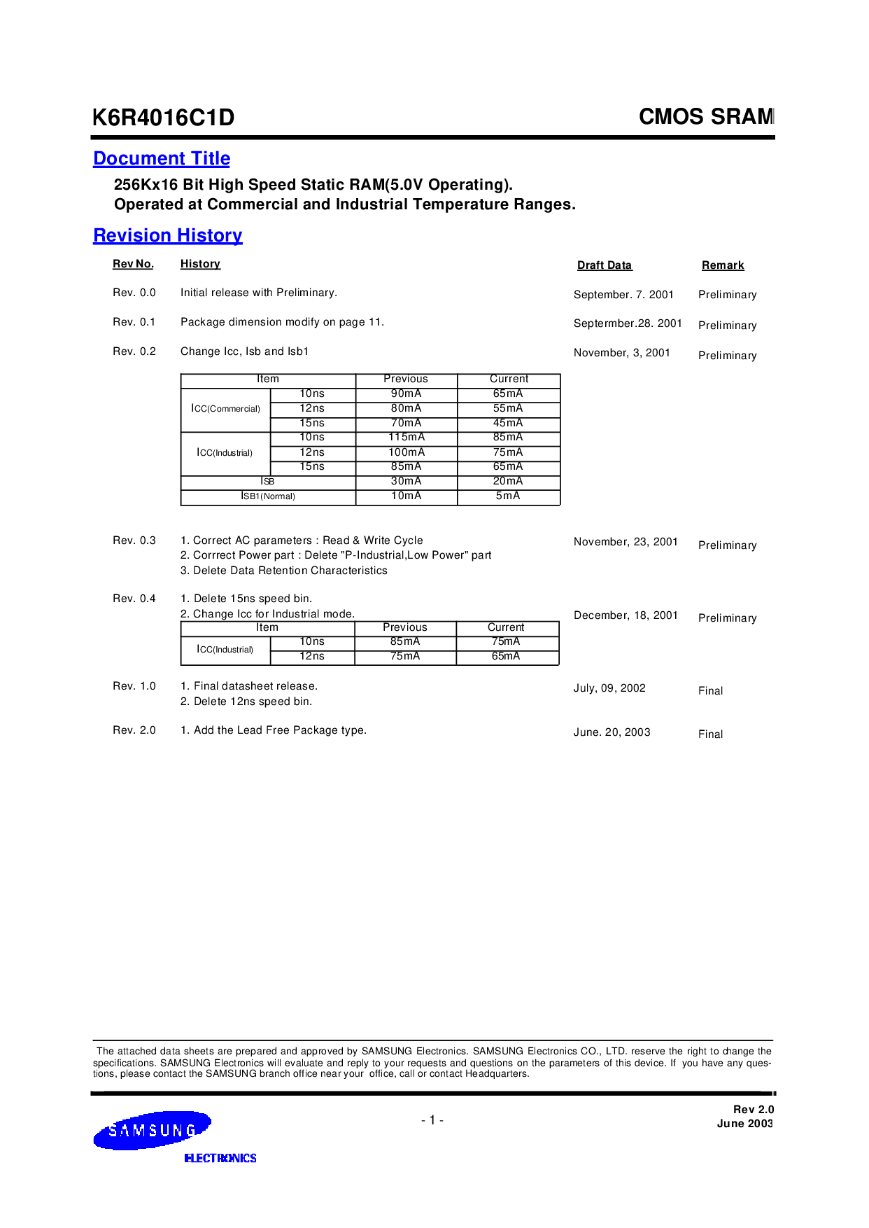 浏览型号K6R4008V1D-TI08的Datasheet PDF文件第2页