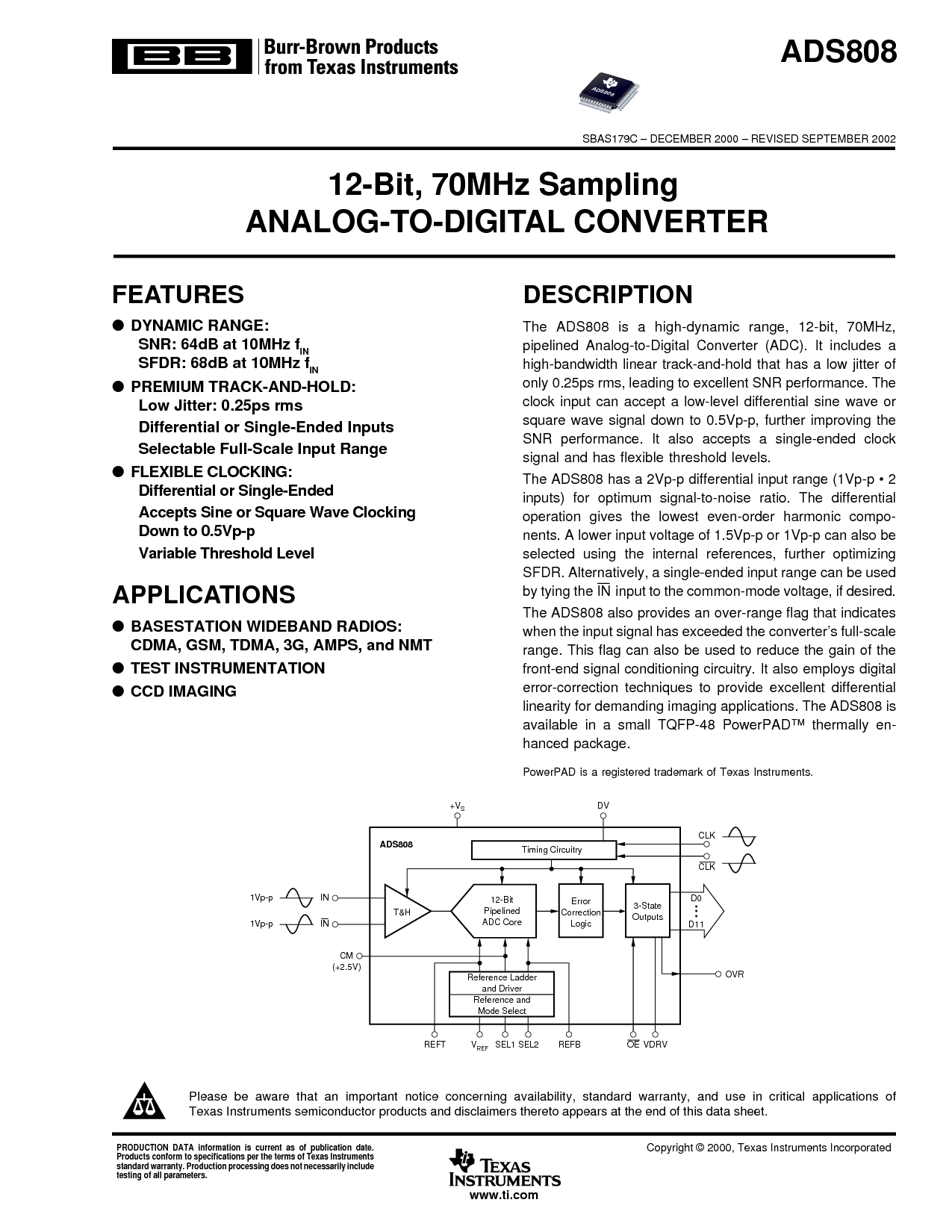 这 ads808 是 一个 高动态 范围, 12-有点, 70mhz,