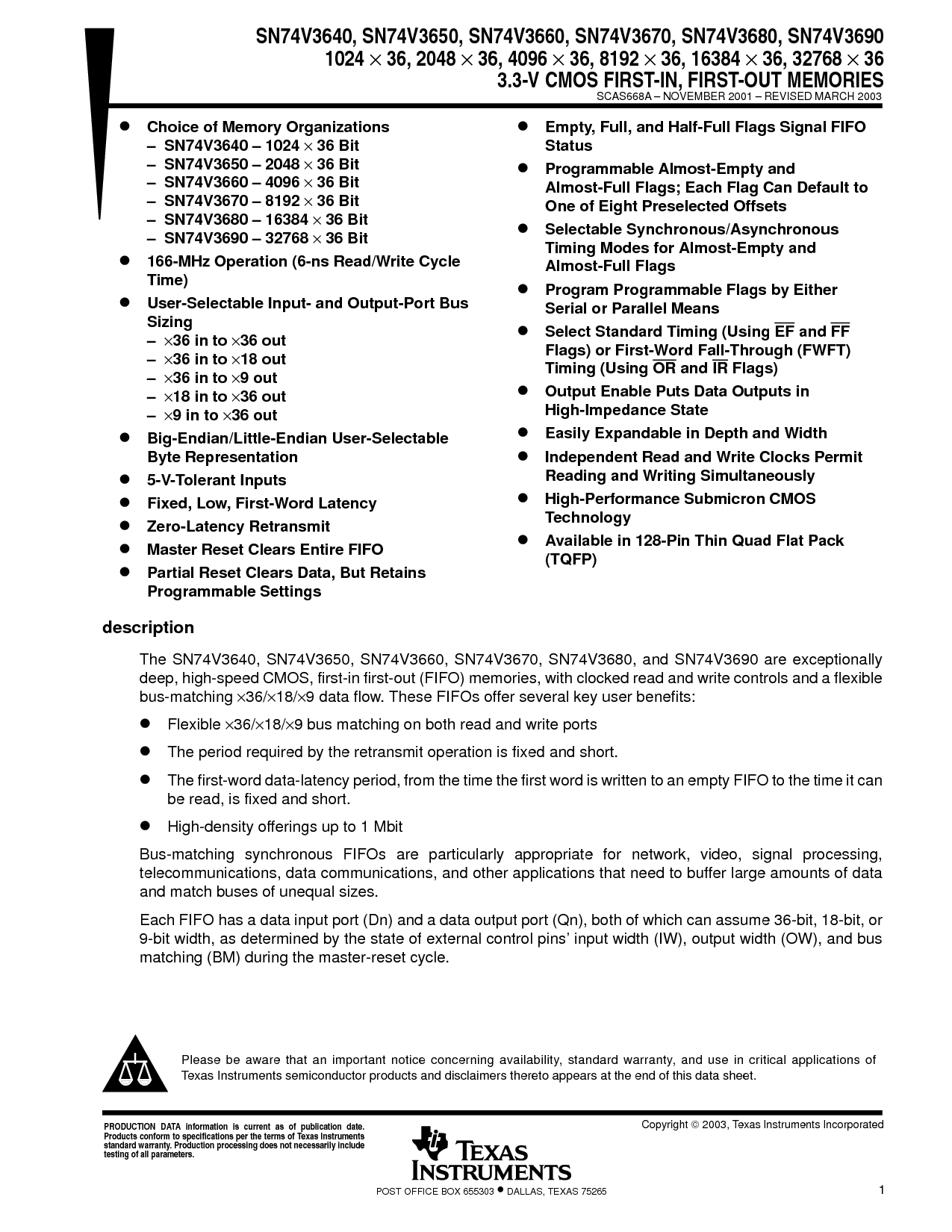 3.3-V CMOS FIRST-IN, FIRST-OUT MEMORIES