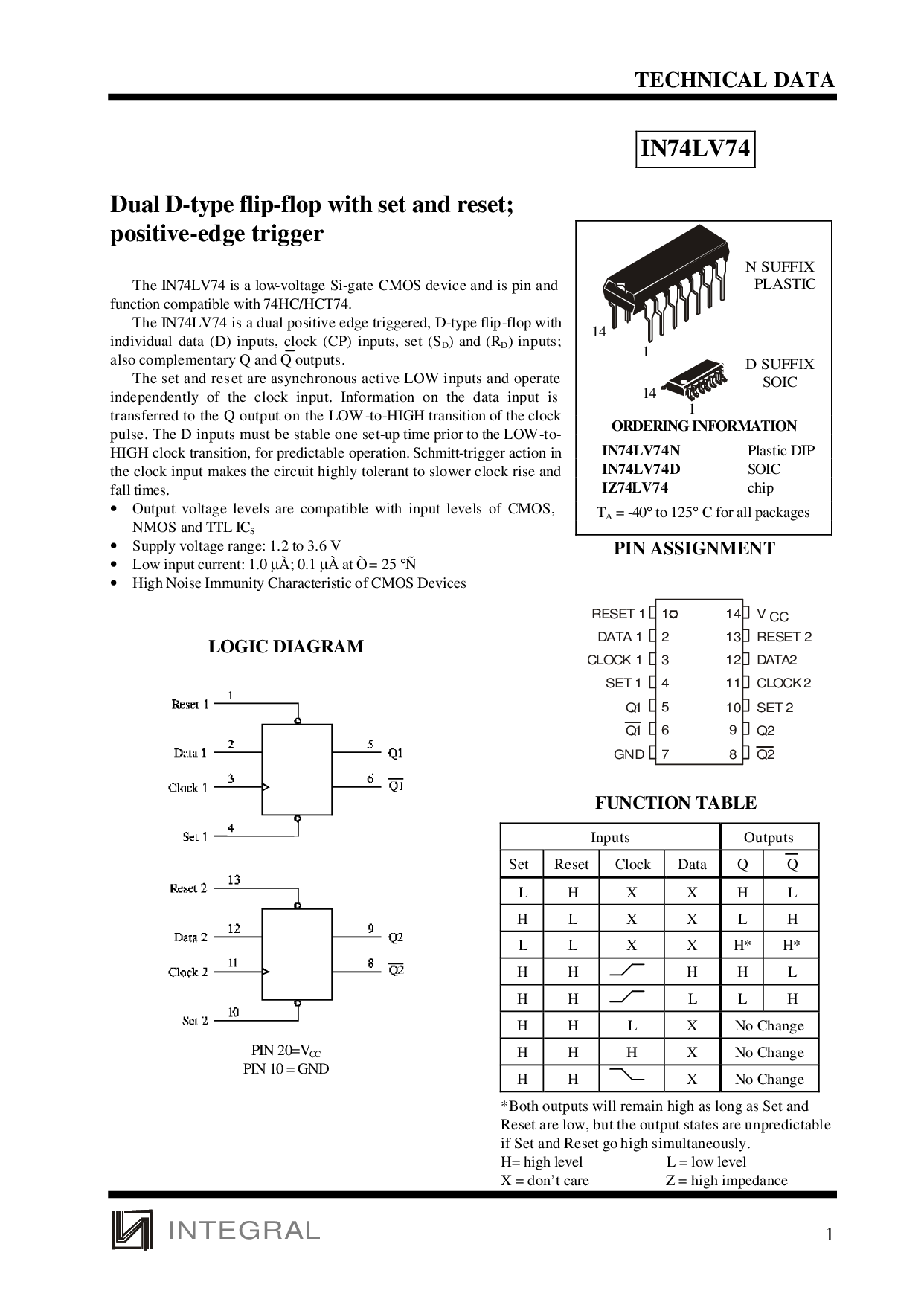 这入点74lv74 是 一个 低-电压 si-闸门 cmos 设备 和 是 管脚 和