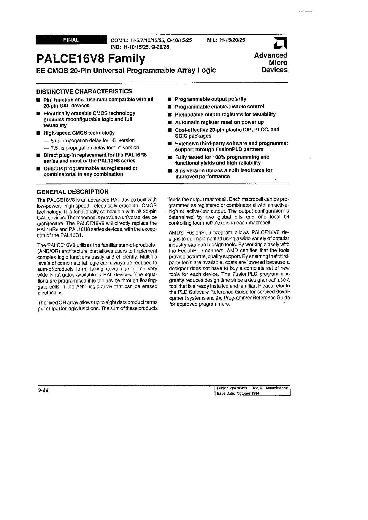 EE CMOS 20-Pin Universal Programmable Array Logic