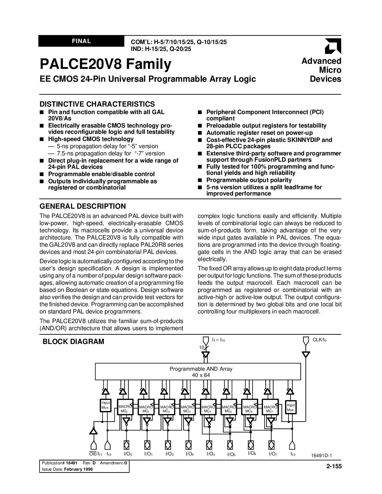 这 palce20v8 是 一个 高级 pal 设备 已建成 与