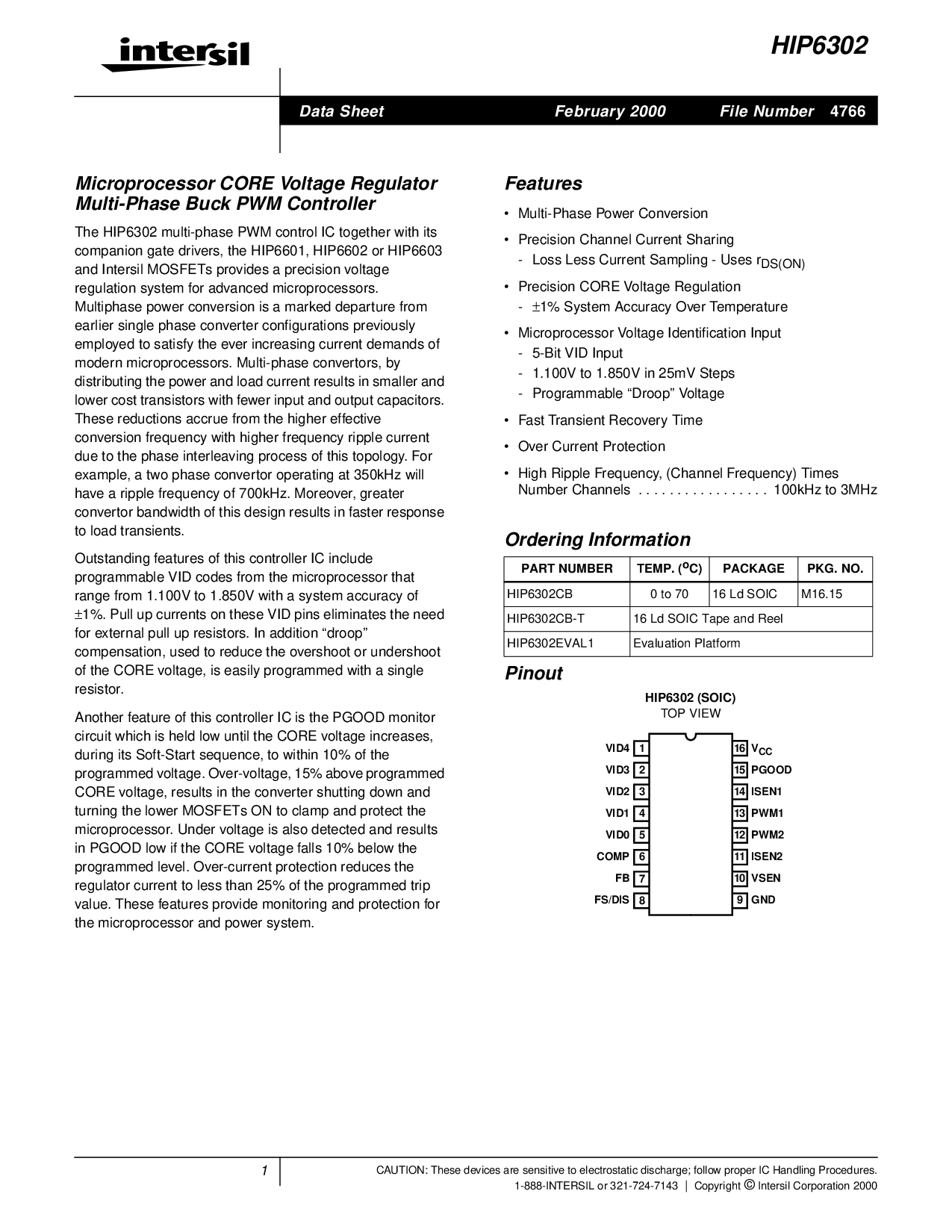 浏览型号HIP6302EVAL1的Datasheet PDF文件第2页