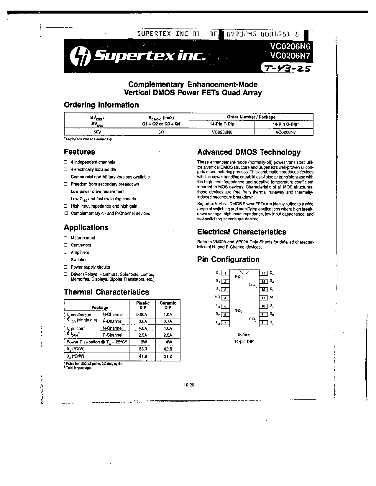 Complementary Enhancement-Mode Vertical DMOS Power FETs Quad Array