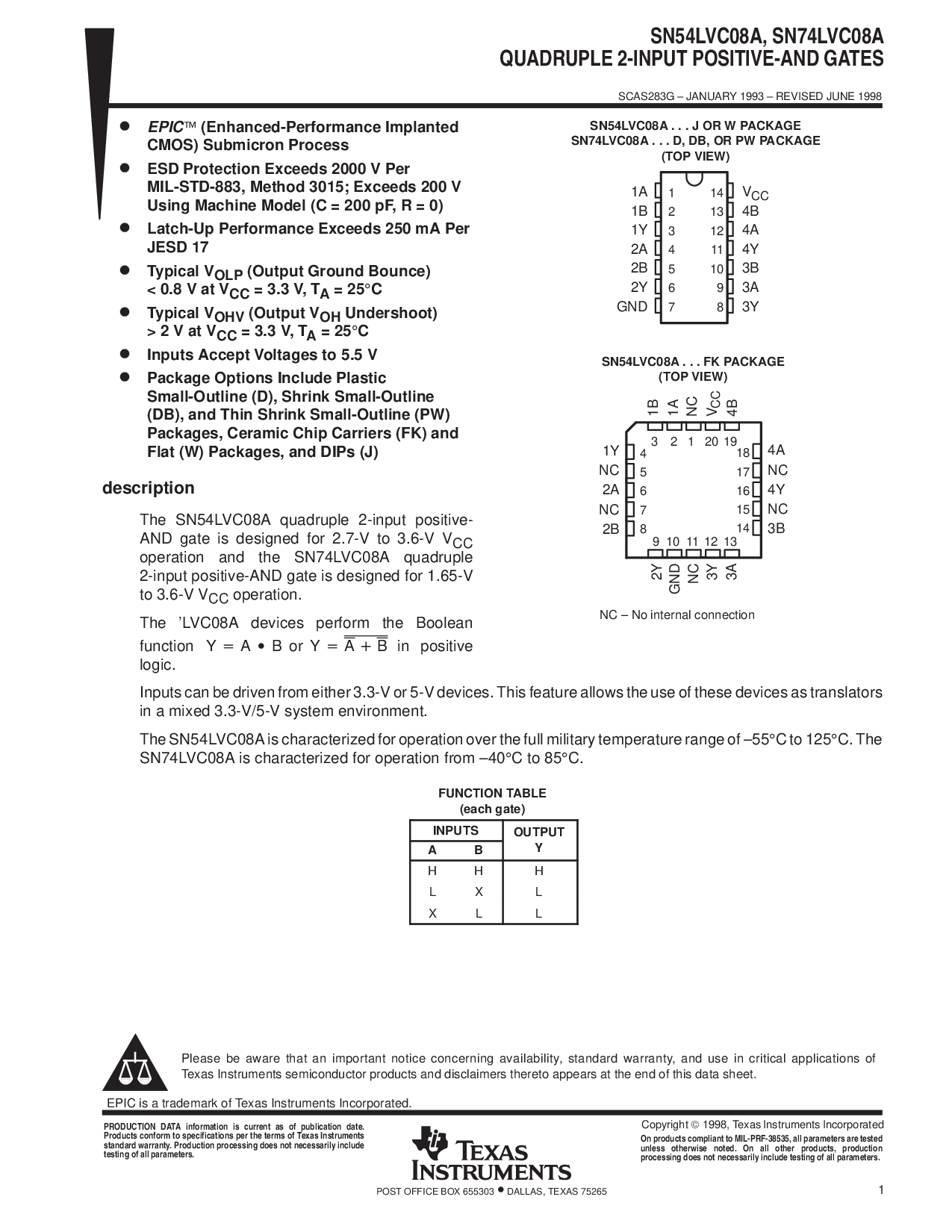 sn54lvc08a, sn74lvc08a