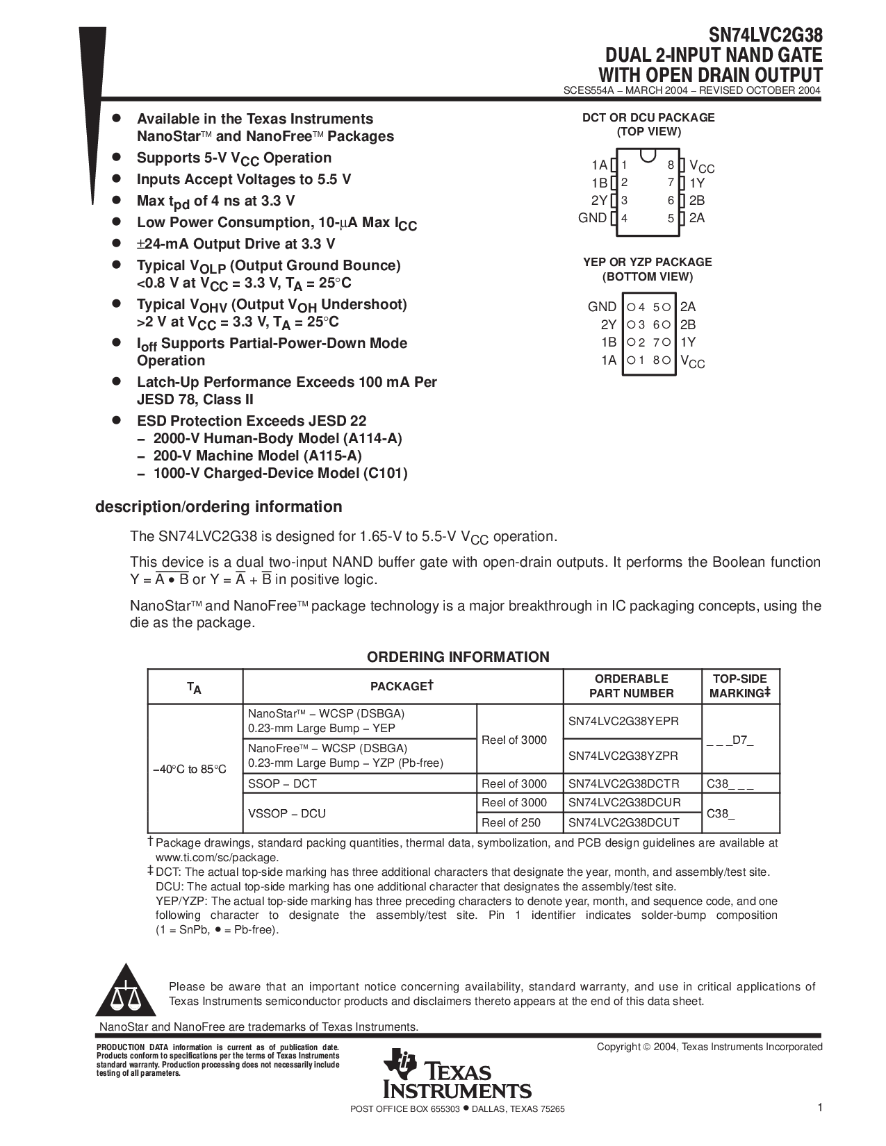 浏览型号SN74LVC2G38的Datasheet PDF文件第2页