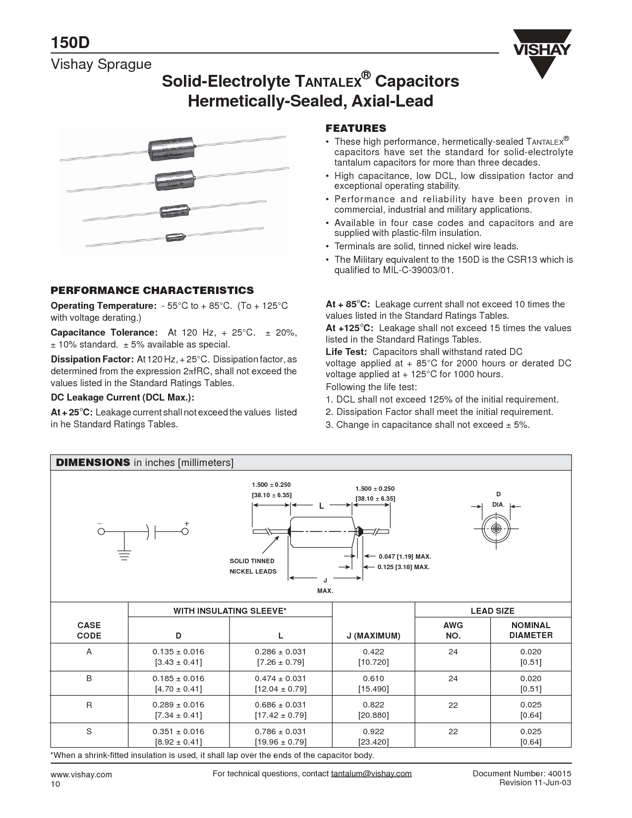 Solid-Electrolyte TANTALEX Capacitors Hermetically-Sealed, Axial-Lead