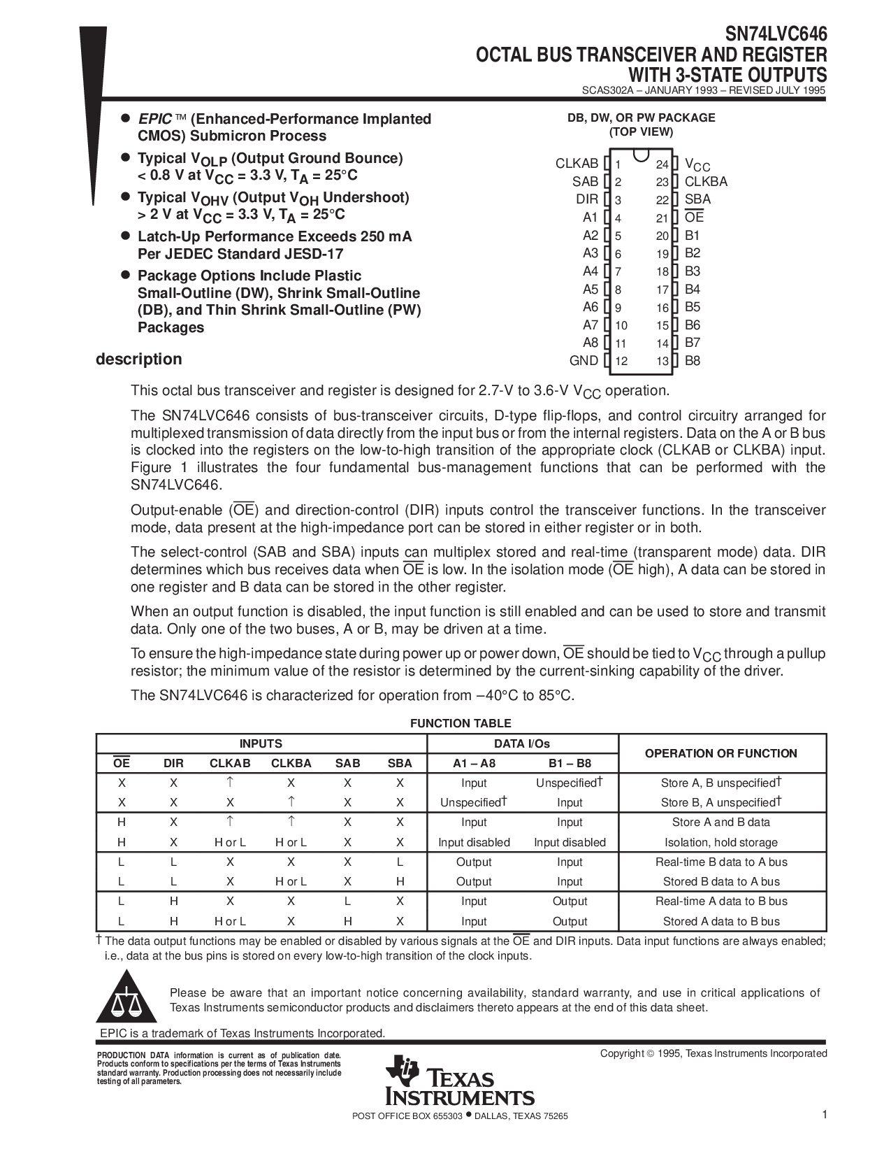 这 sn74lvc646 由 的 总线-收发器 电路, d-类型 翻转-拖鞋, 和 控制 电路 已安排 用于