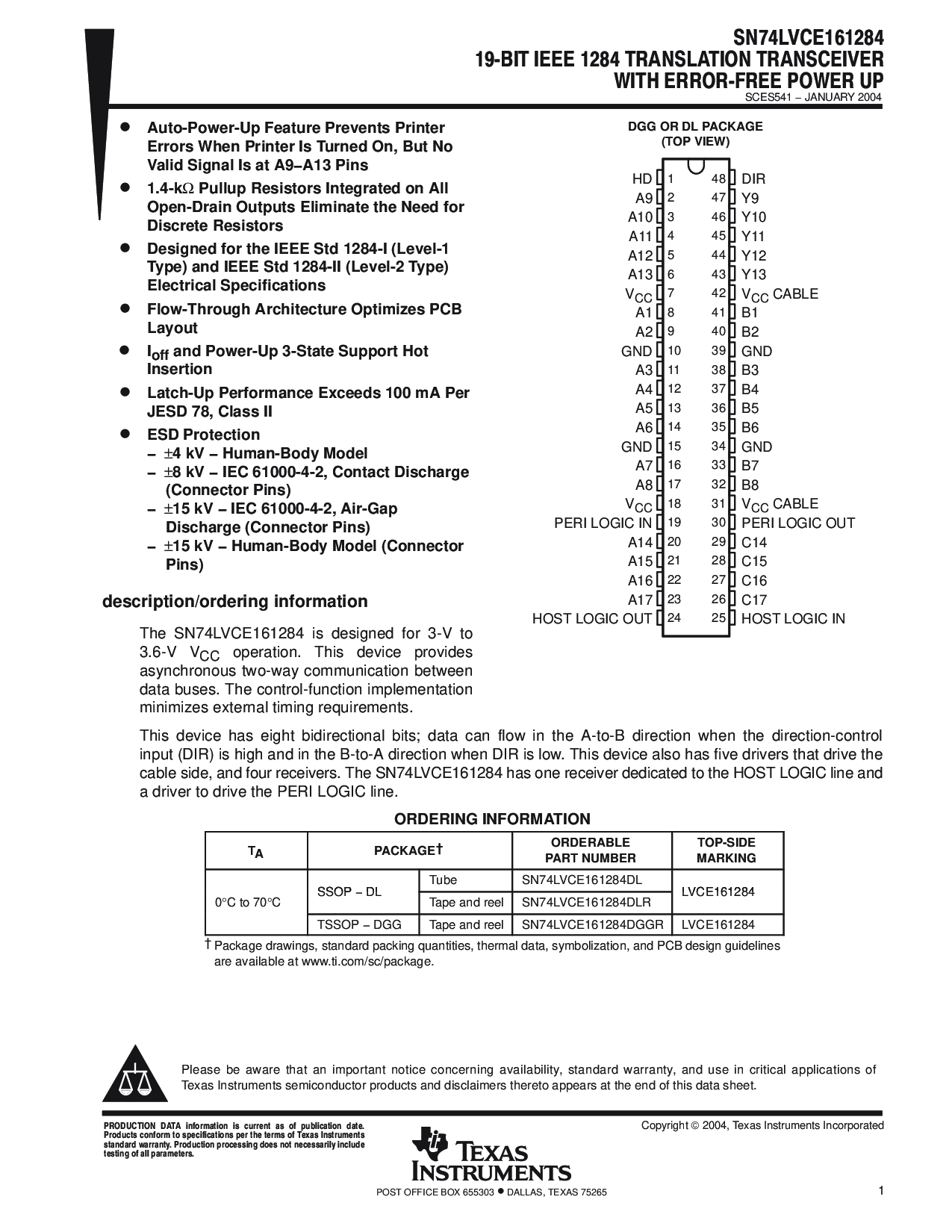 19 BIT IEEE 1284 TRANSLATION TRANSCEIVER WITH ERROR FREE POWER UP