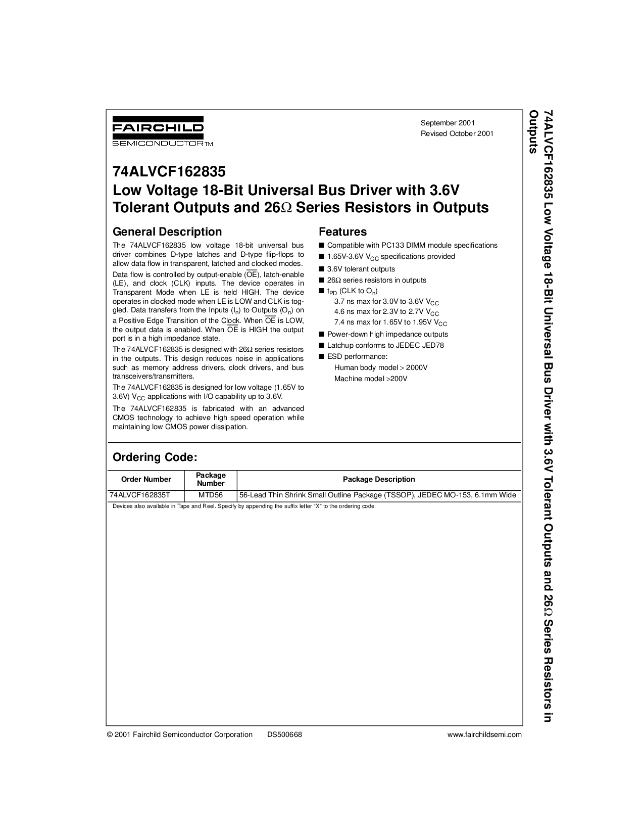 © 2001 仙童 半导体 公司 DS500668 www.仙女半.com