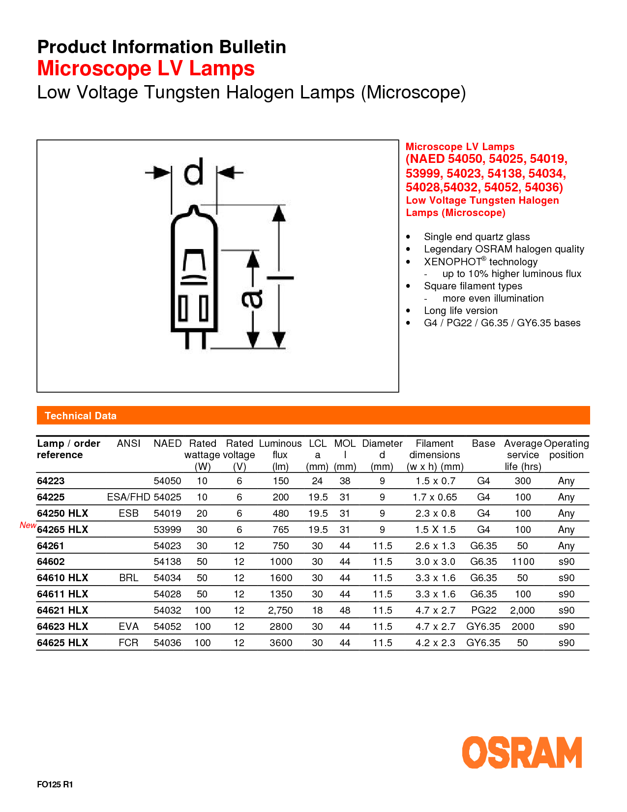 Product Information Bulletin Microscope LV Lamps Low Voltage Tungsten Halogen Lamps (Microscope)