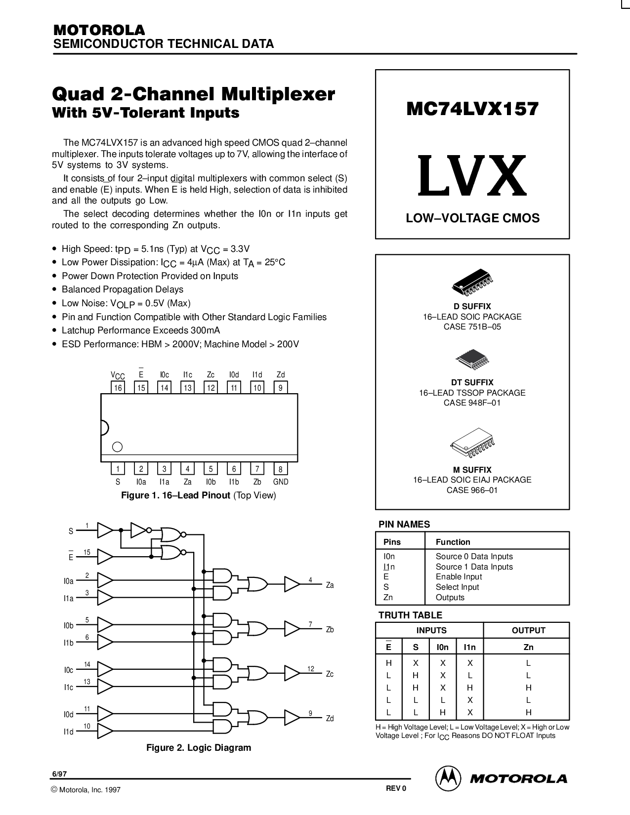 这 mc74lvx157 是 一个 高级 高 速度 cmos 四边形 2–channel