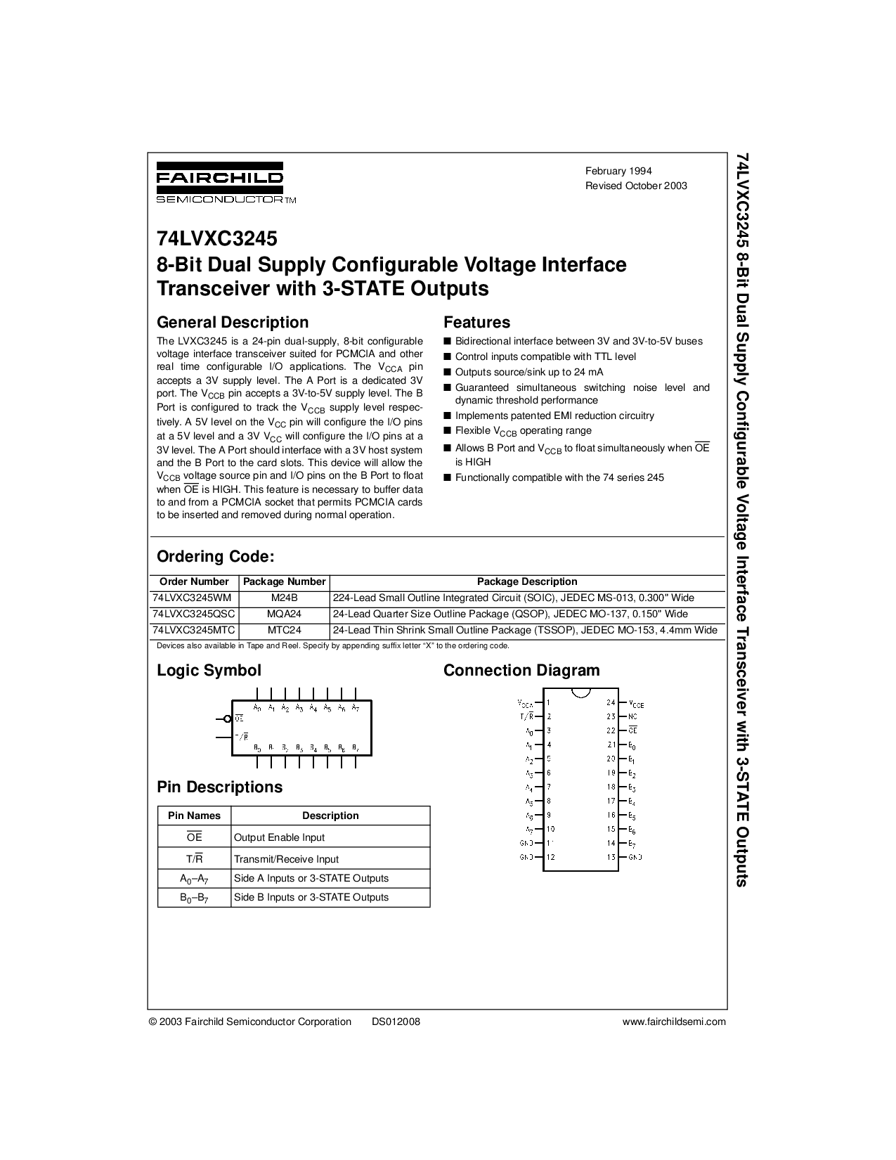 浏览型号74LVXC3245QSC的Datasheet PDF文件第3页