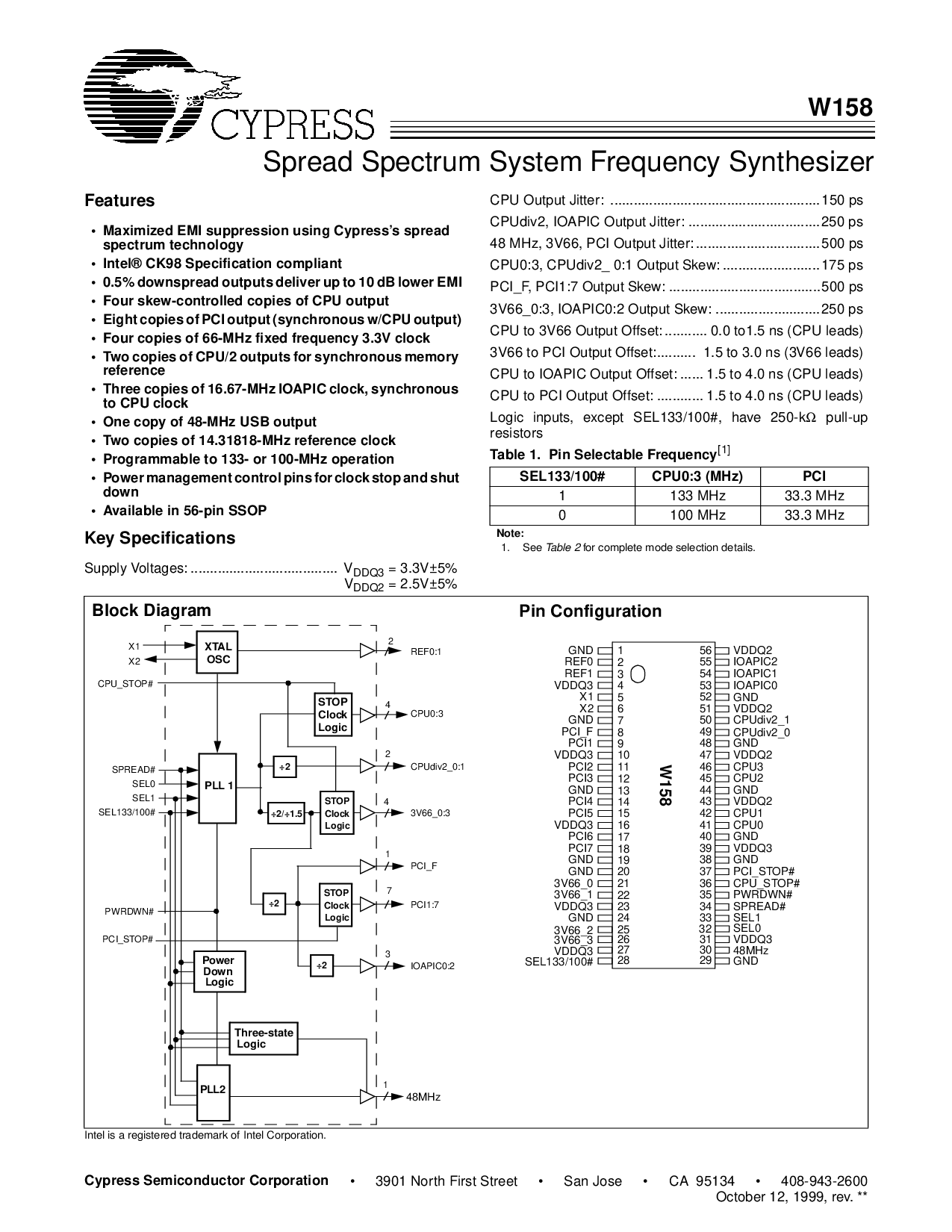 48 mhz, 3v66, pci 输出 抖动: ................................500 ps