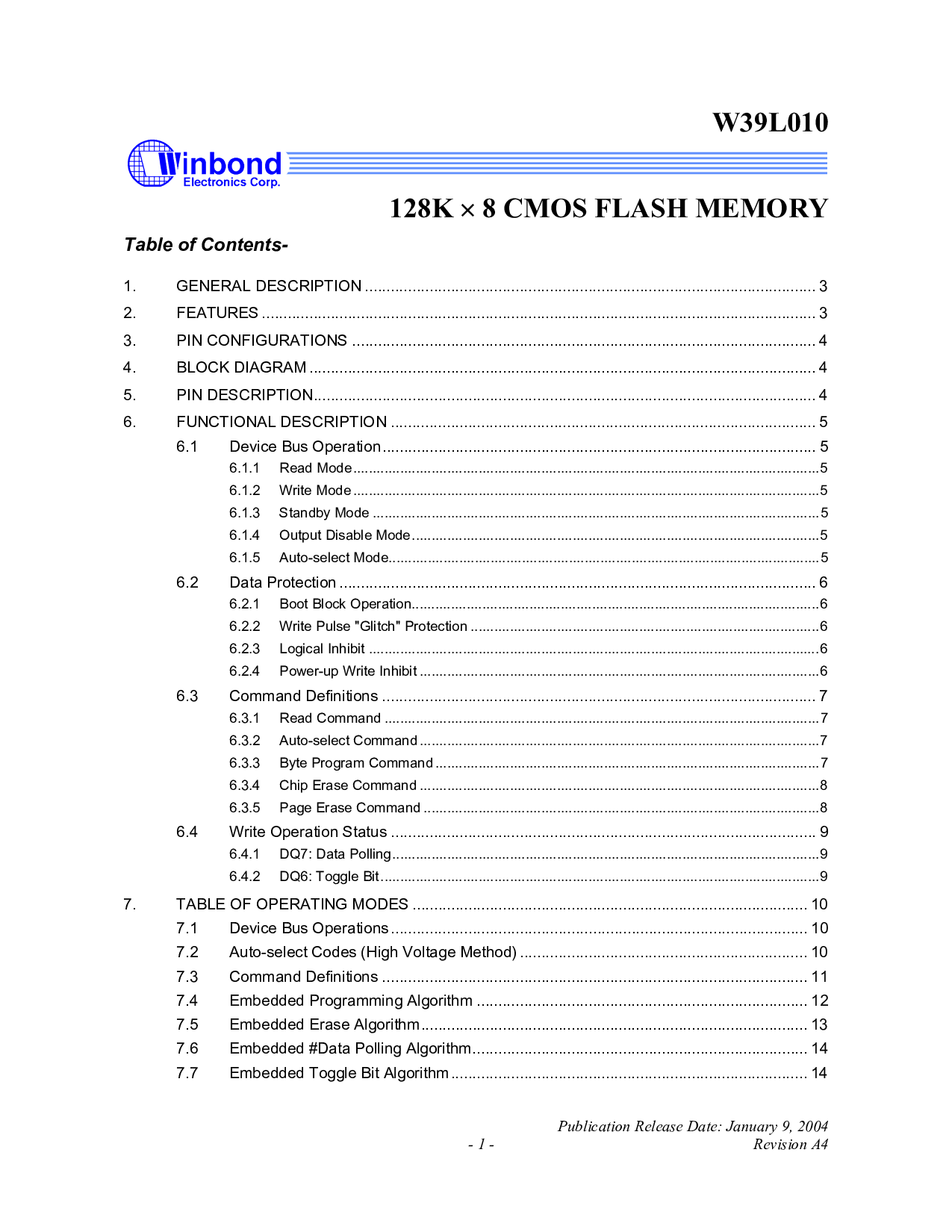 浏览型号W39L010Q-70的Datasheet PDF文件第4页