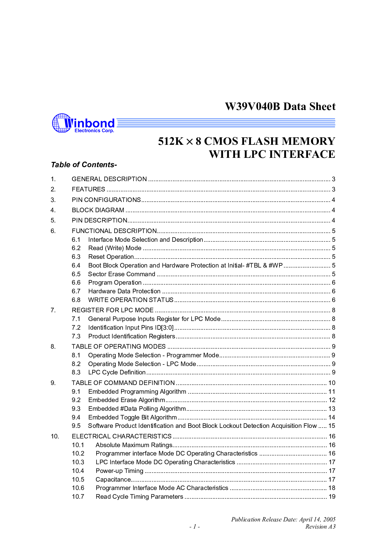 浏览型号W39V040BQZ的Datasheet PDF文件第3页