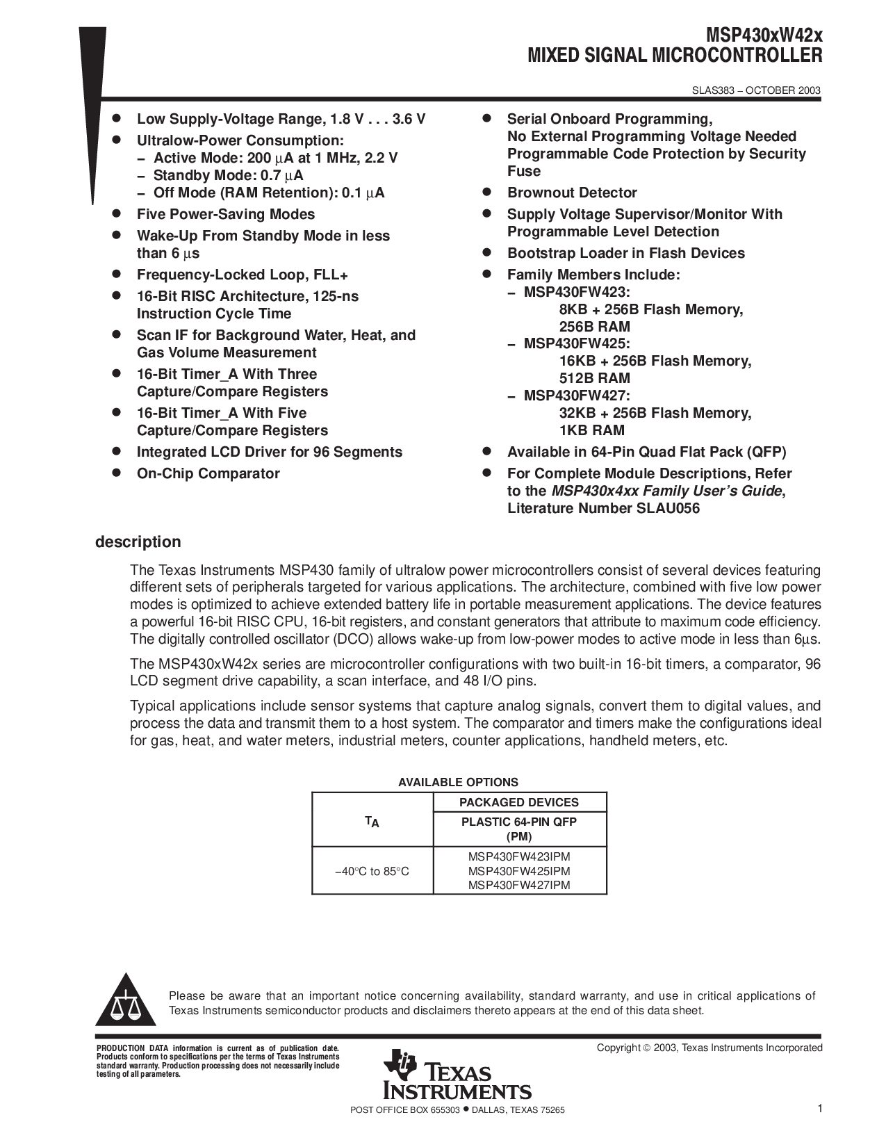 这 msp430xw42x 系列 是 微控制器 配置 与 两个 内置 16-有点 计时器, 一个 比较器, 96