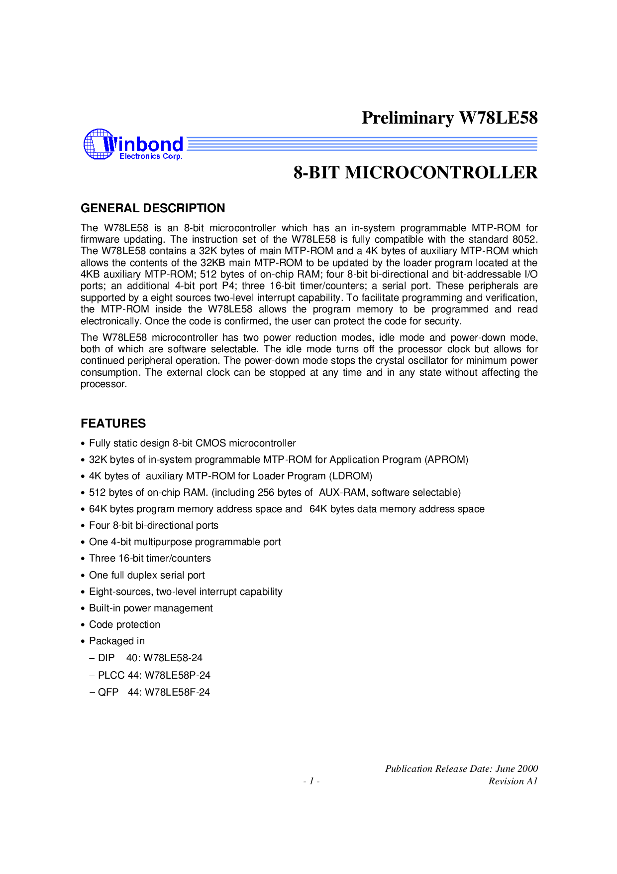 浏览型号W78LE58-24的Datasheet PDF文件第2页