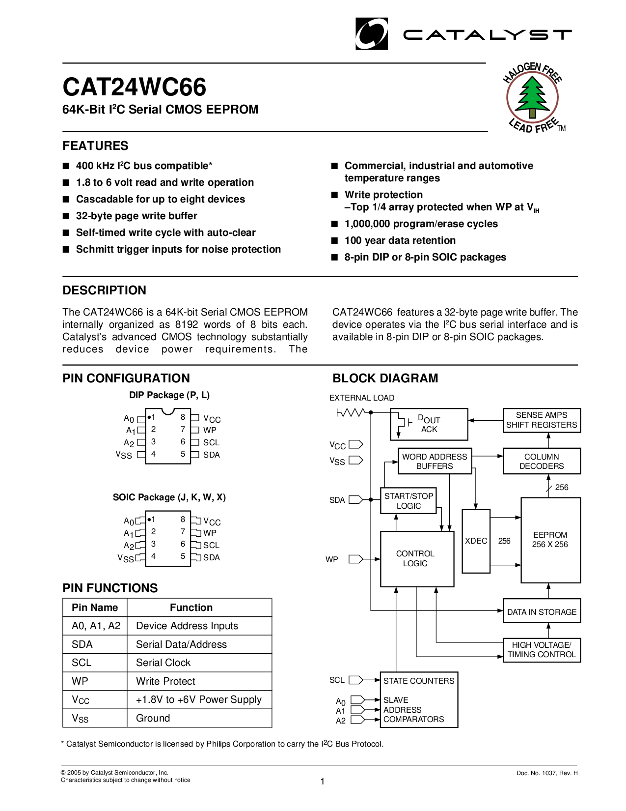 浏览型号CAT24WC66WA-1.8TE13的Datasheet PDF文件第2页