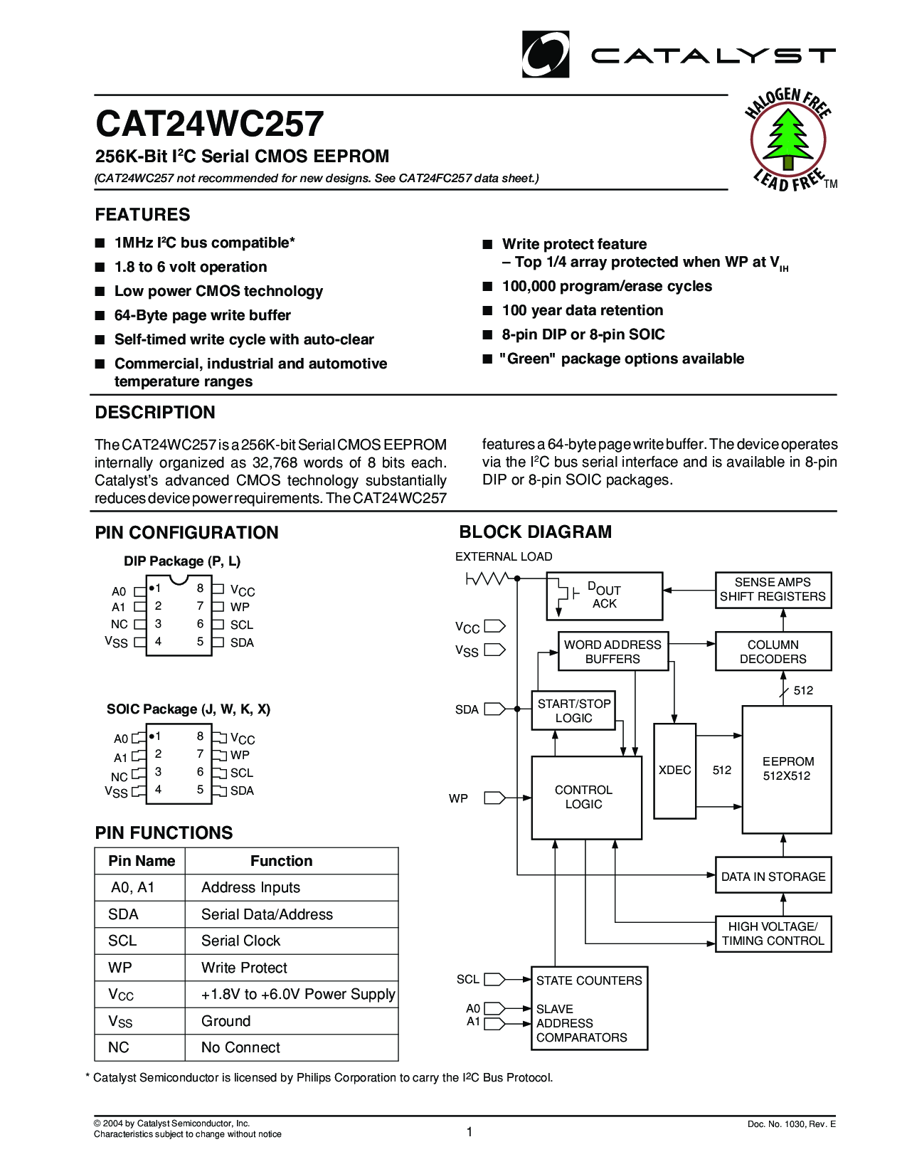 (cat24wc257 不 推荐 用于 新建 设计. 请参见 cat24fc257 数据 工作表.)