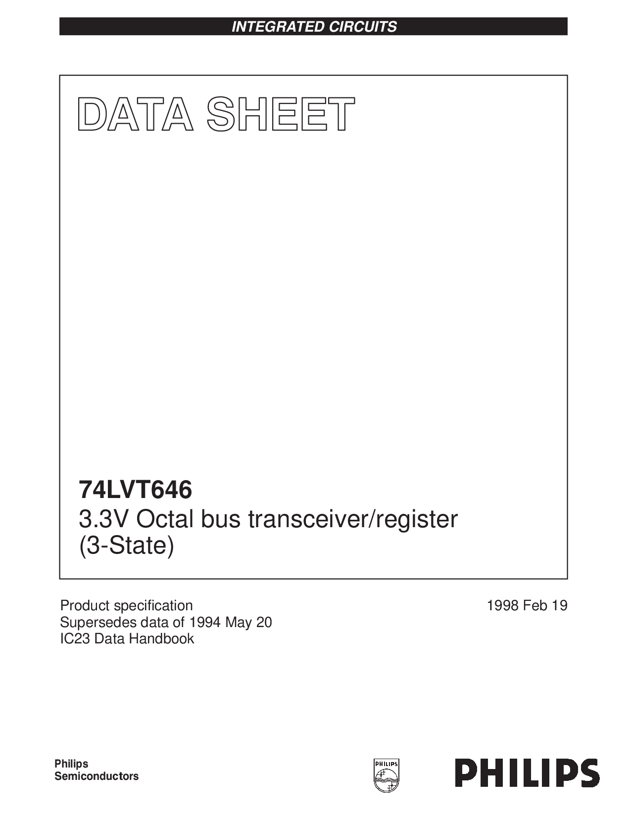 74LVT646 3.3v 八进制 总线 收发器/注册 (3-州) 产品 规格 取代 数据 的 1994 将 20 ic23 数据 手册 1998 二月 19 综合 电路 | |