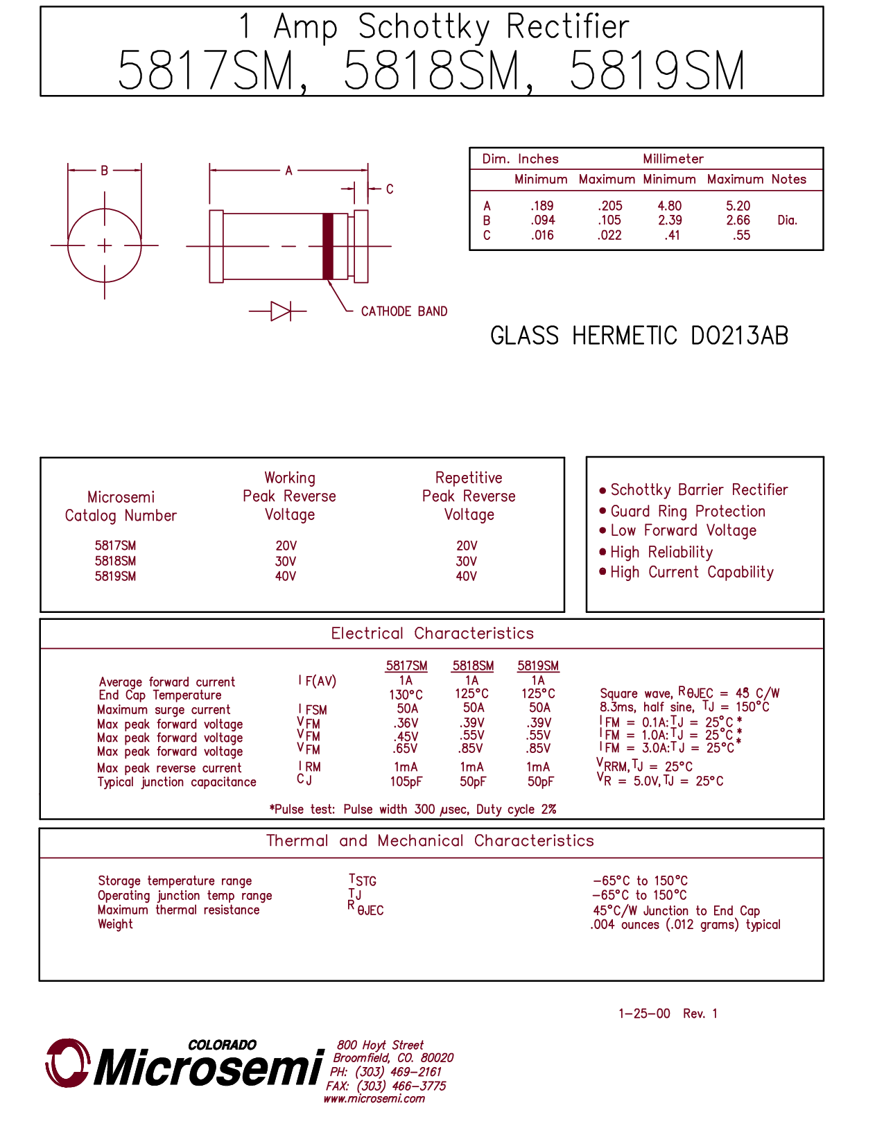 1 Amp Schottky Rectifier