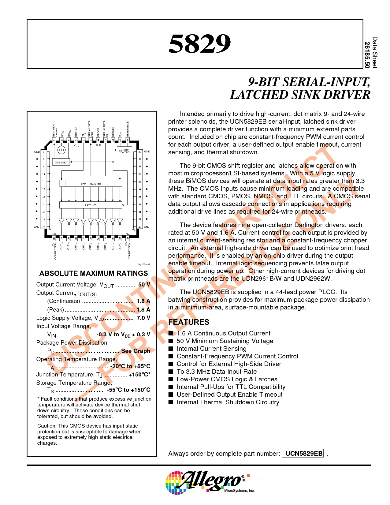 这 ucn5829eb 是 提供的 入点 一个 44-铅 电源 plcc. 其