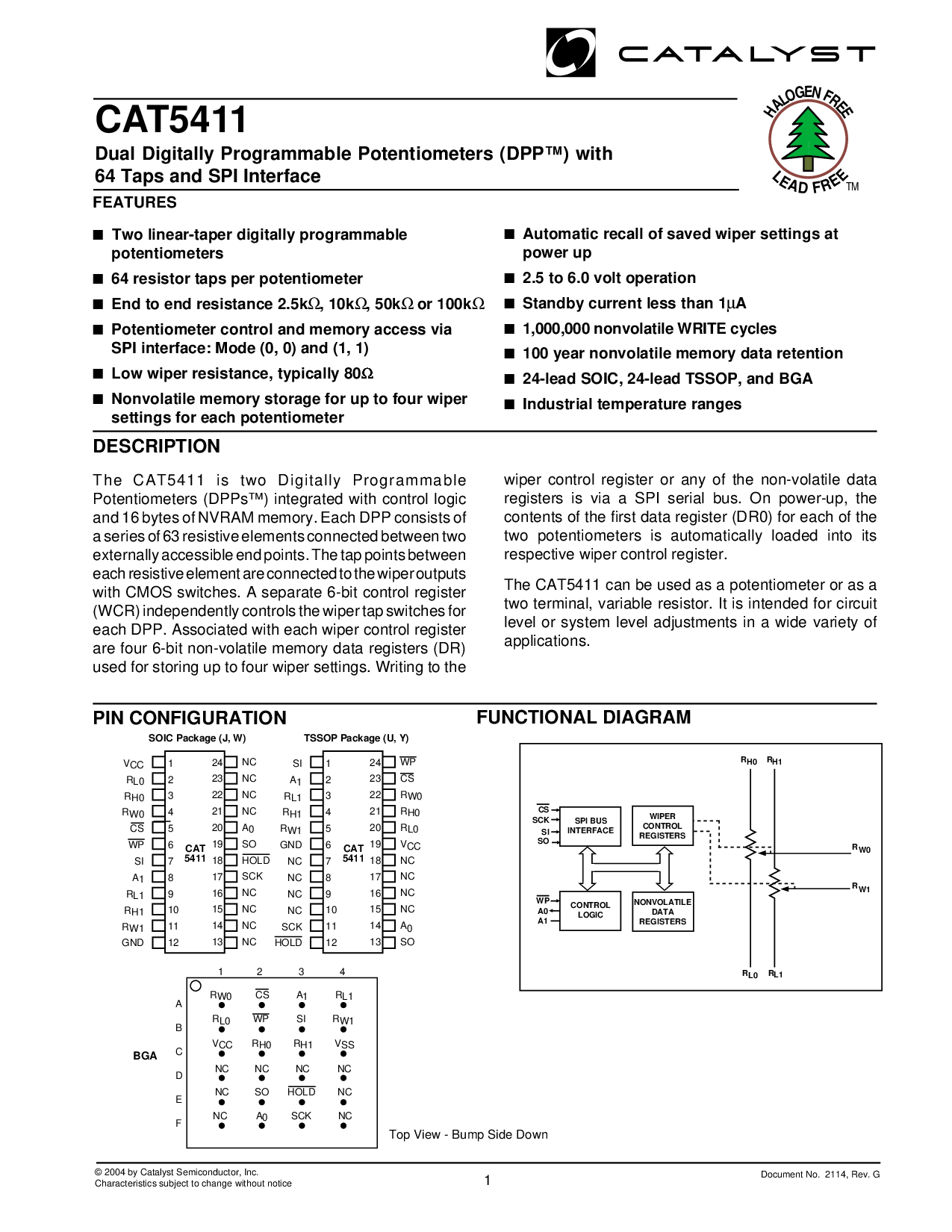 浏览型号CAT5411WI-10-TE13的Datasheet PDF文件第2页