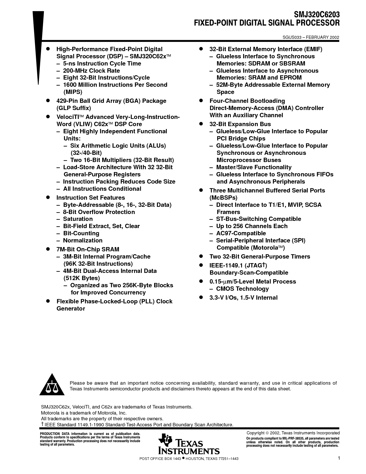 smj320c62x, velociti, 和 c62x 是 商标 的 德州 仪器仪表.
