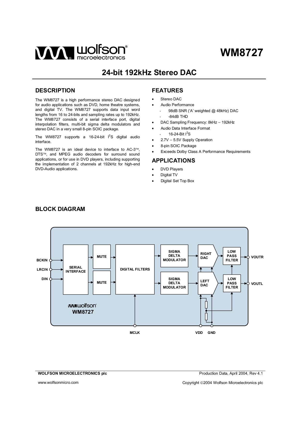 这 WM8727 是 一个 理想 设备 至 接口 至 交流电-3