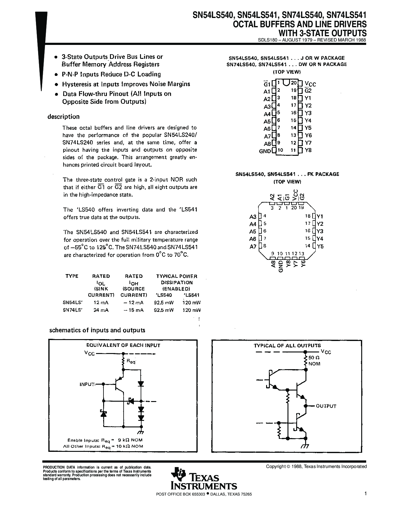 sn54ls540, sn54ls541, sn74ls540, sn74ls541