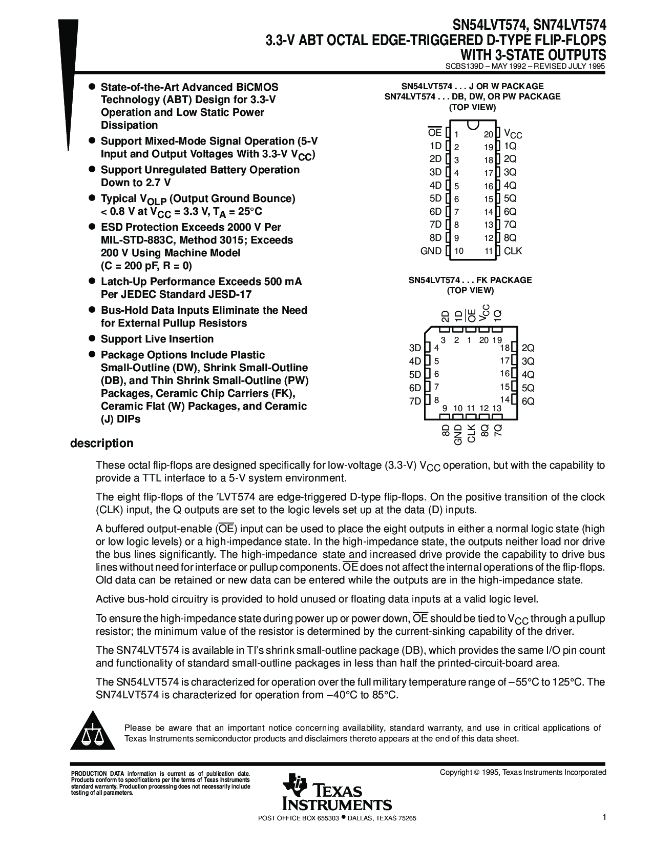 这 sn74lvt574 是 可用 入点 ti’s 收缩 小轮廓 包装 (db), 哪个 提供 这 相同 我/o 管脚 计数
