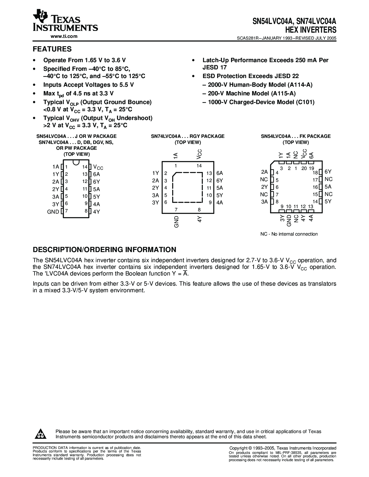 thesn54lvc04ahexinvertercontainssixindependentinvertersdesignedfor2.7-vto3.6-vv