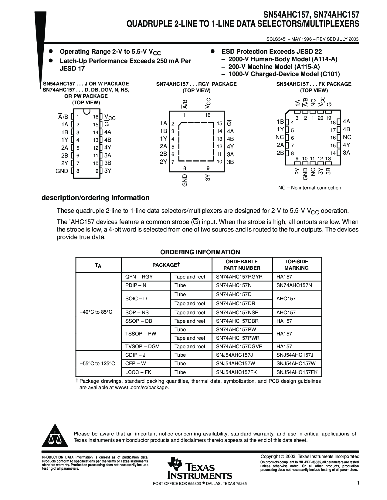 SN74AHC157 . . . d, db, dgv, n, ns,