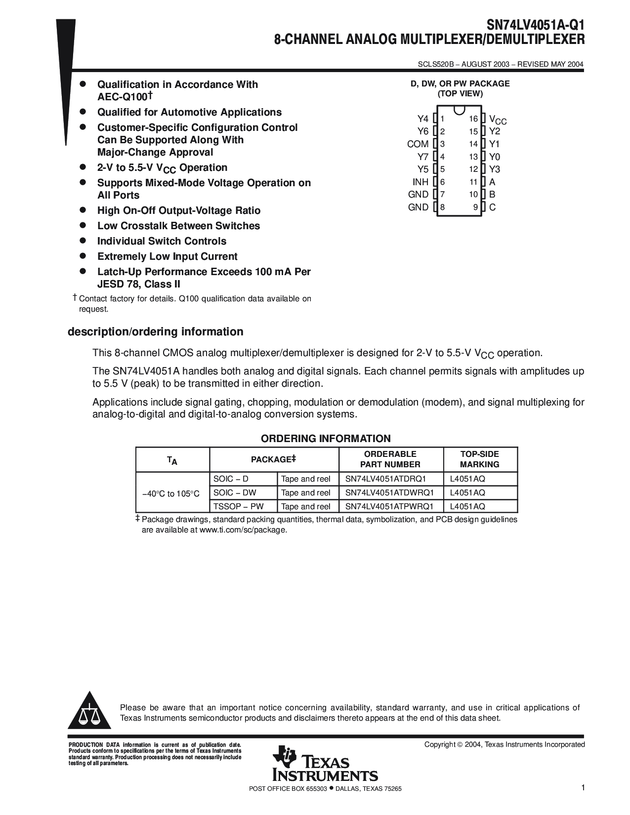 soic − dw 胶带 和 卷轴 SN74LV4051ATDWRQ1 L4051AQ